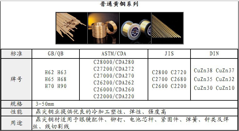 普通黄铜:H59,H59-1,H62,H63,H65,H68,H70,H80等高品质环保黄铜